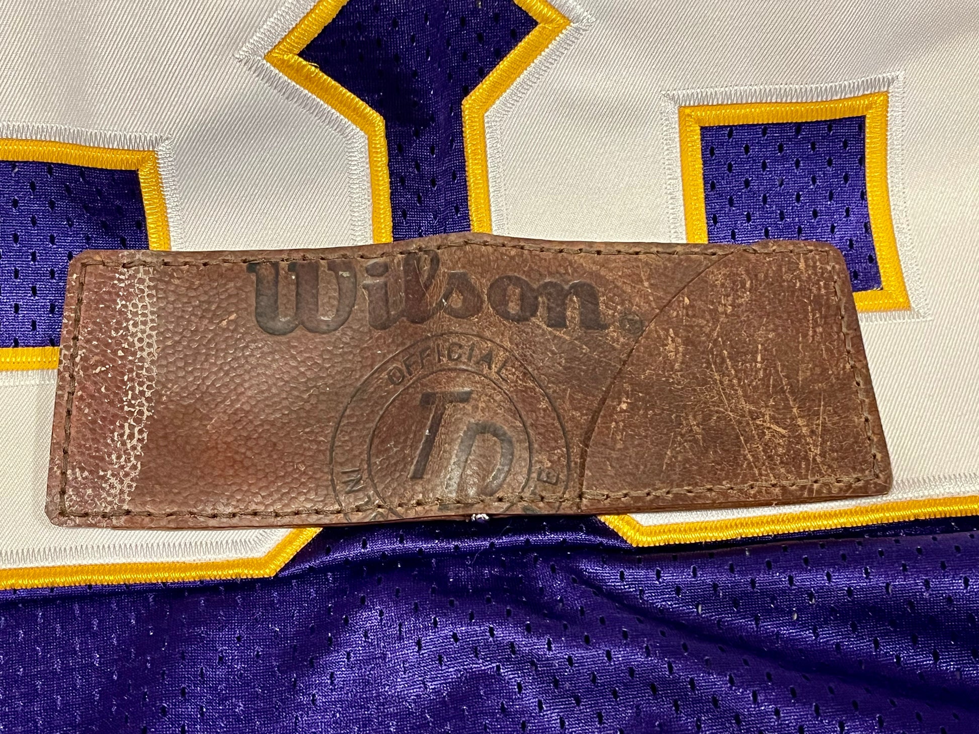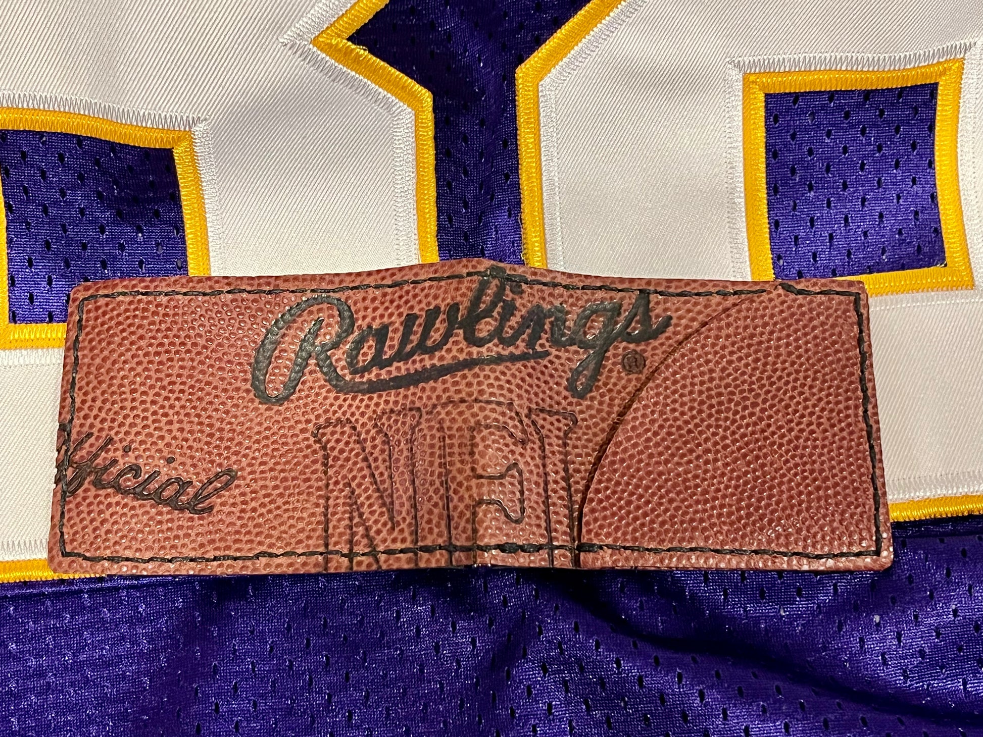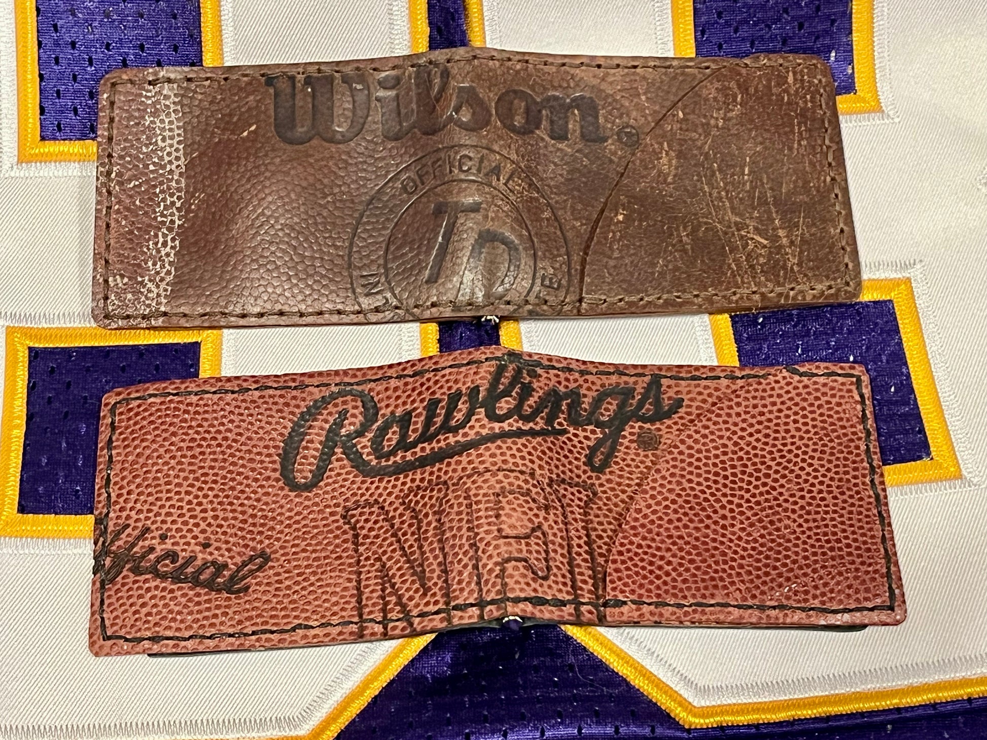 Rawlings football wallet is made from a vintage football - Pete Rozelle era.
