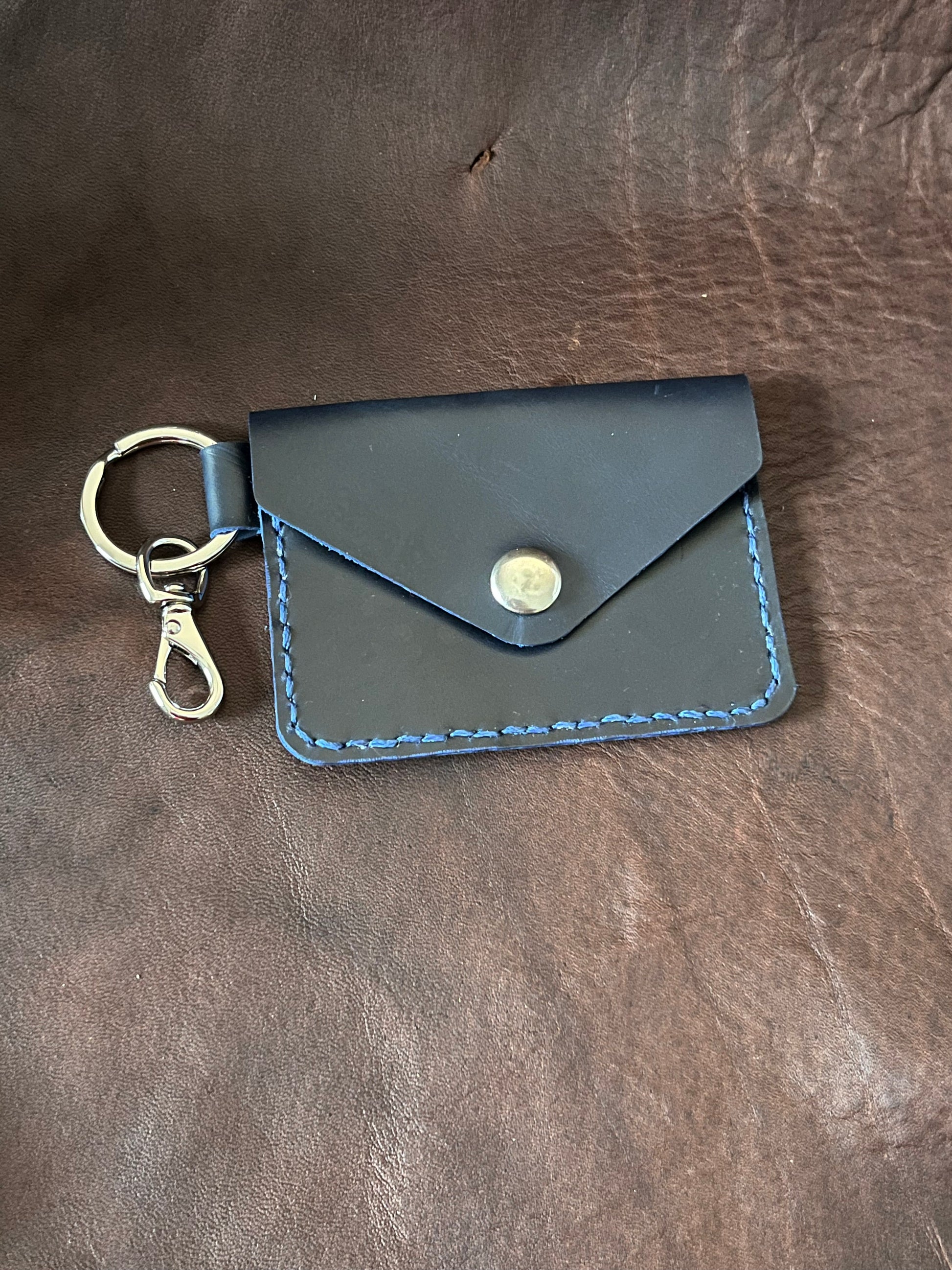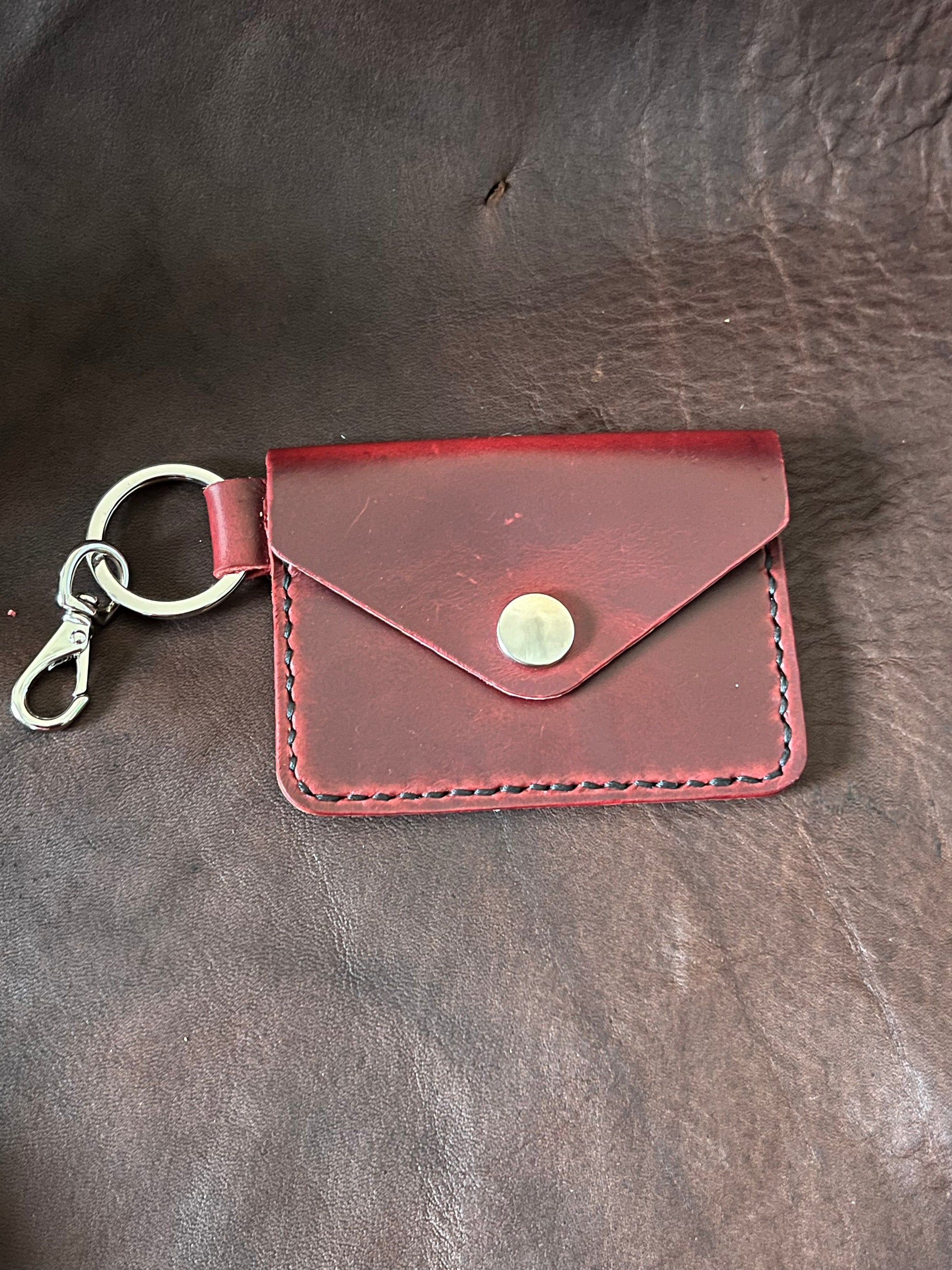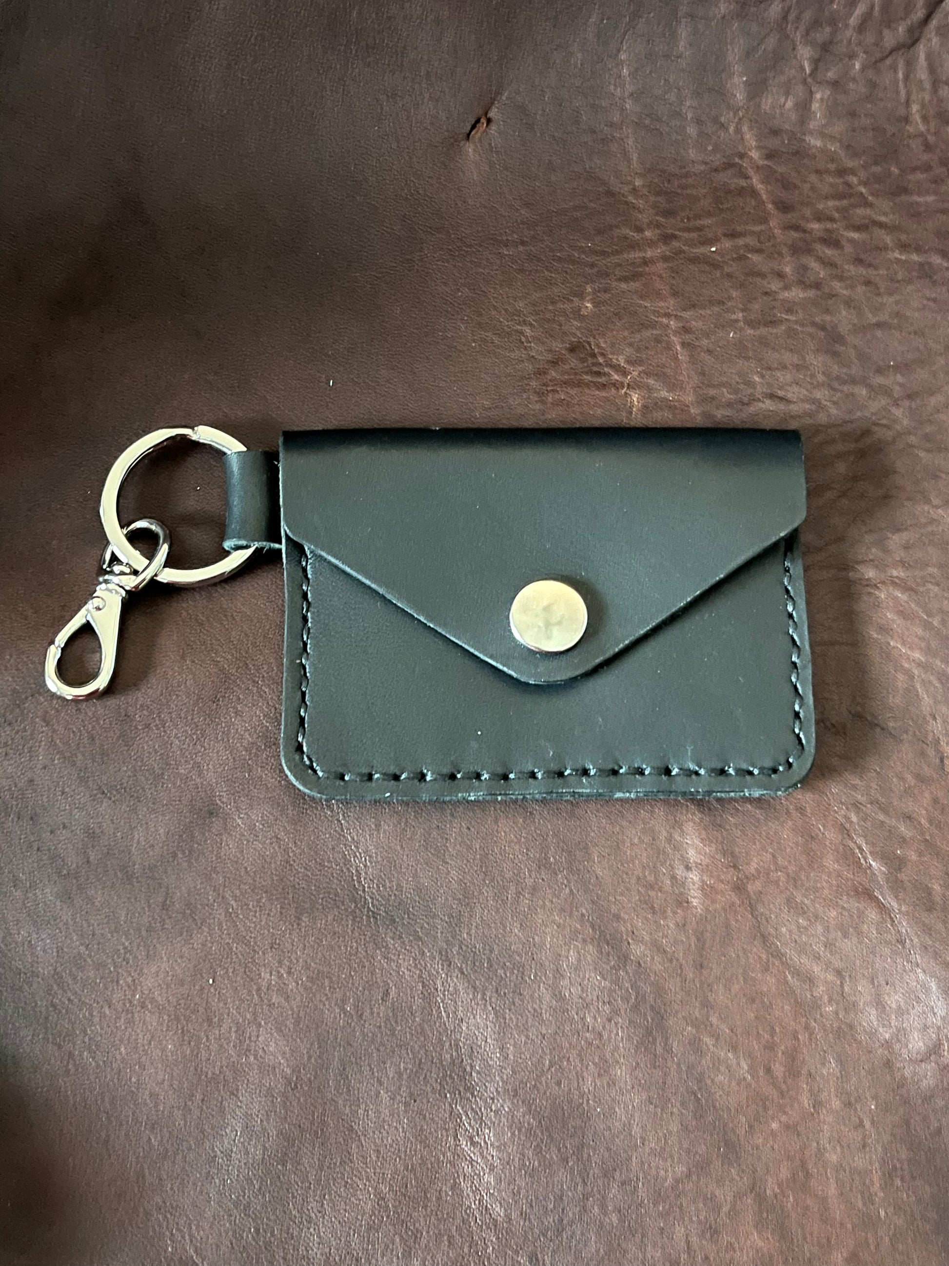 This little leather keychain wallet can keep your most used cards and a little cash always within reach! It has both a clip and a keyring so you can attach it inside a purse, to a lanyard, or just put it a pocket!